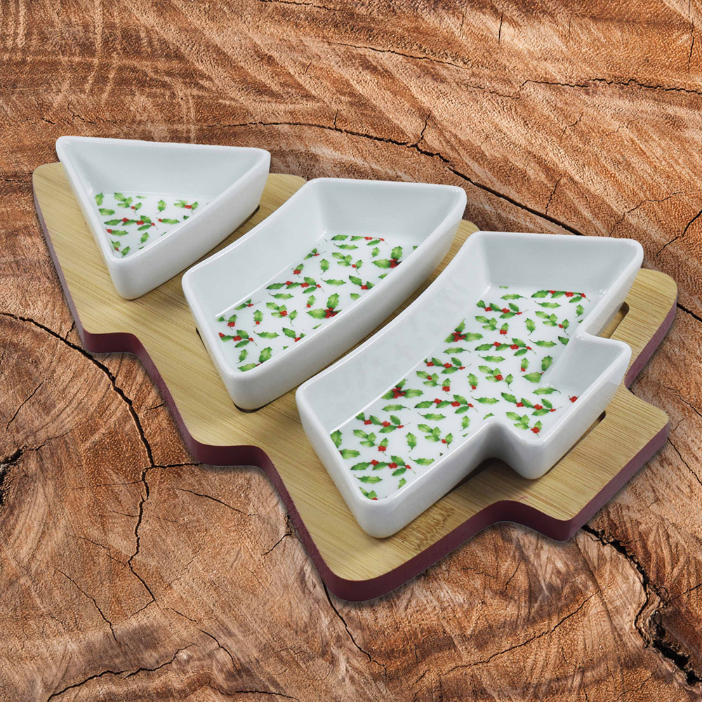 Christmas Tree Tray with 3 Dishes 20x28x4cm