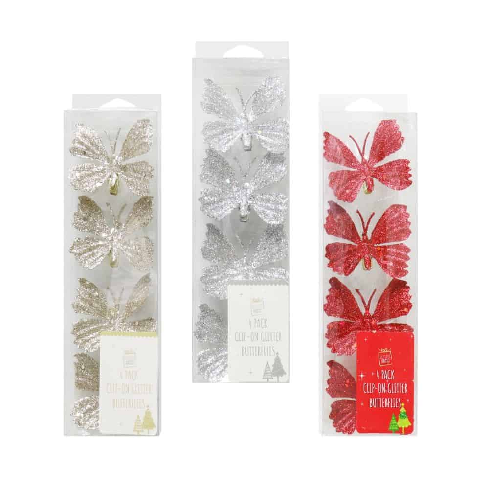 4Piece Clip On Butterfly Glitter Decoration