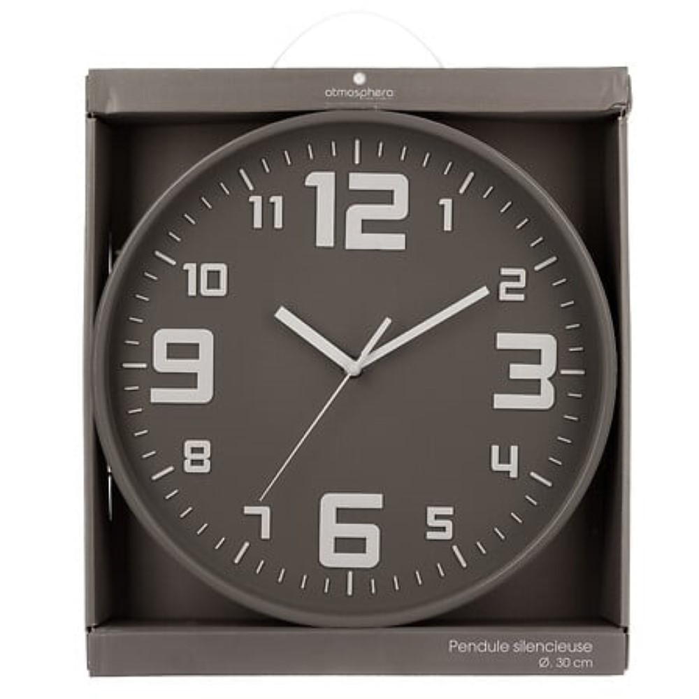Grey Plastic Wall Clock D30cm