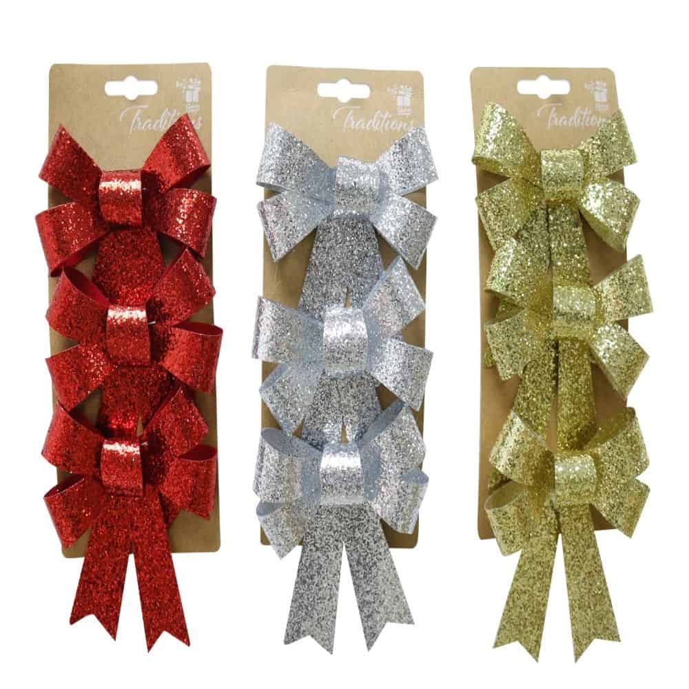 LUXURY GLITTER DLX BOW SML 3pc 3asst