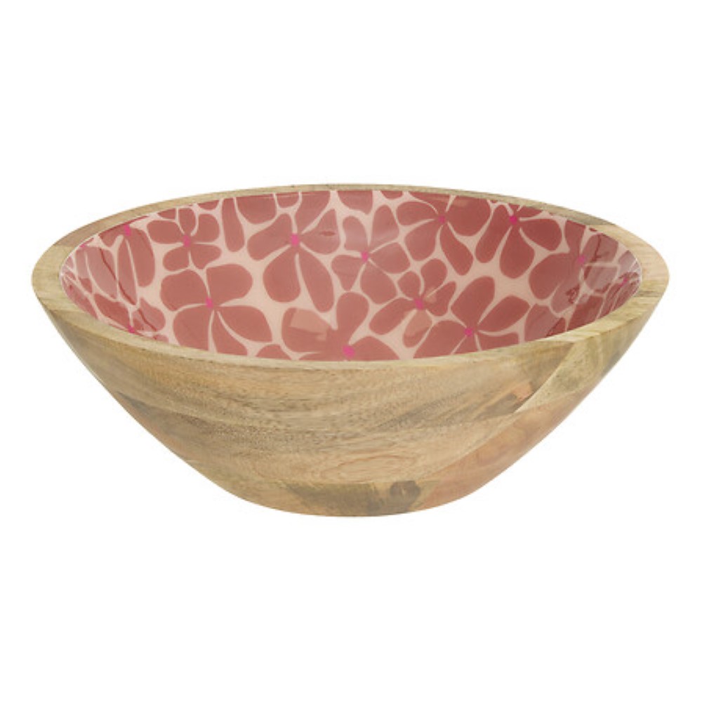 Mango Wood Salad Bowl Flower Design Inner D30cm