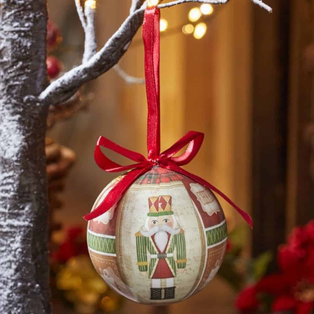 The Nutcracker bauble showcases a classic design inspired by the traditional nutcracker figures. Adorned with festive colours and intricate details, this bauble adds a nostalgic and elegant touch to your Christmas tree, celebrating the charm of the holiday season.