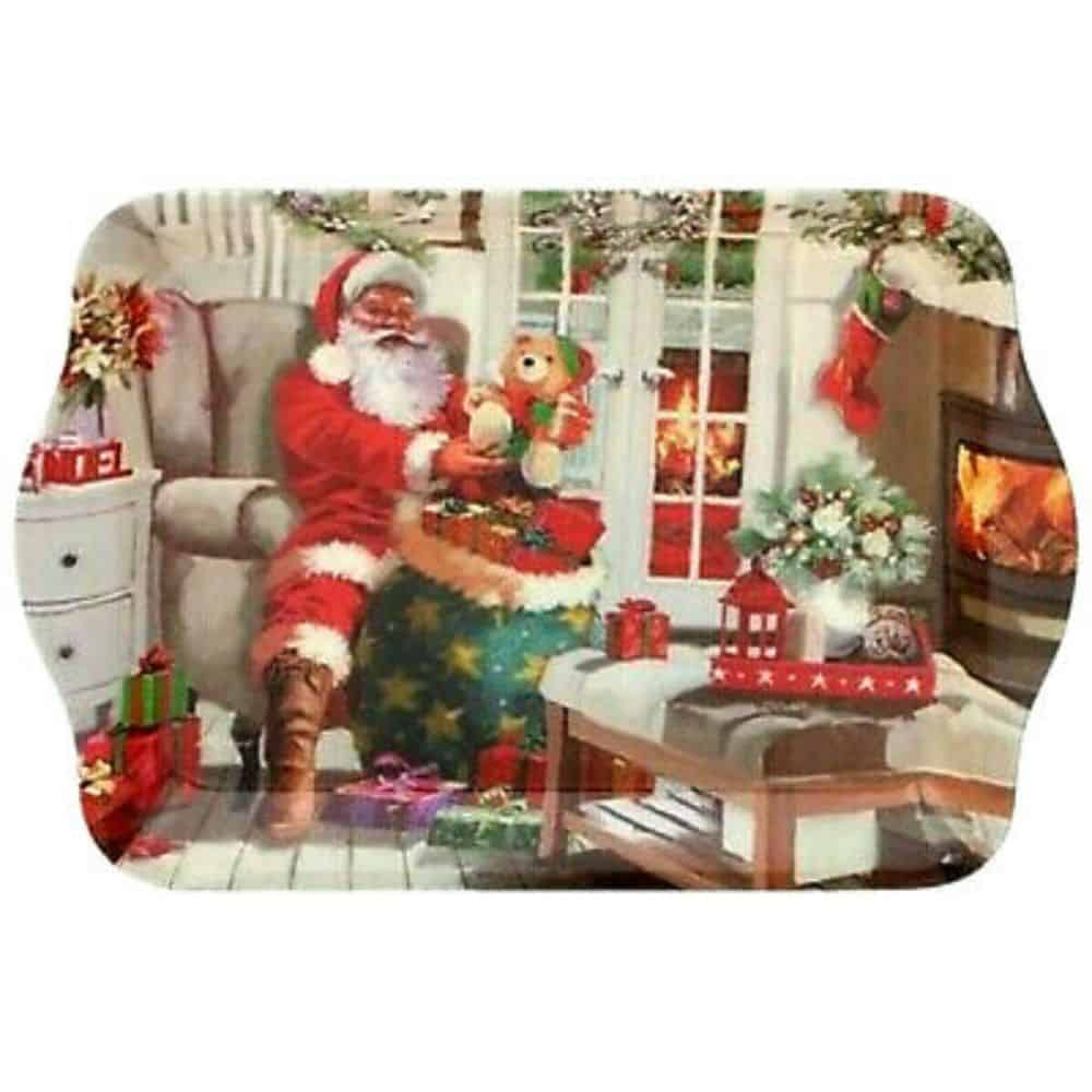 The prefect way to present your seasonal treats on this small Christmas tray 21 x 14cm with a picture of Santa sitting by the fire with a teddy bear.